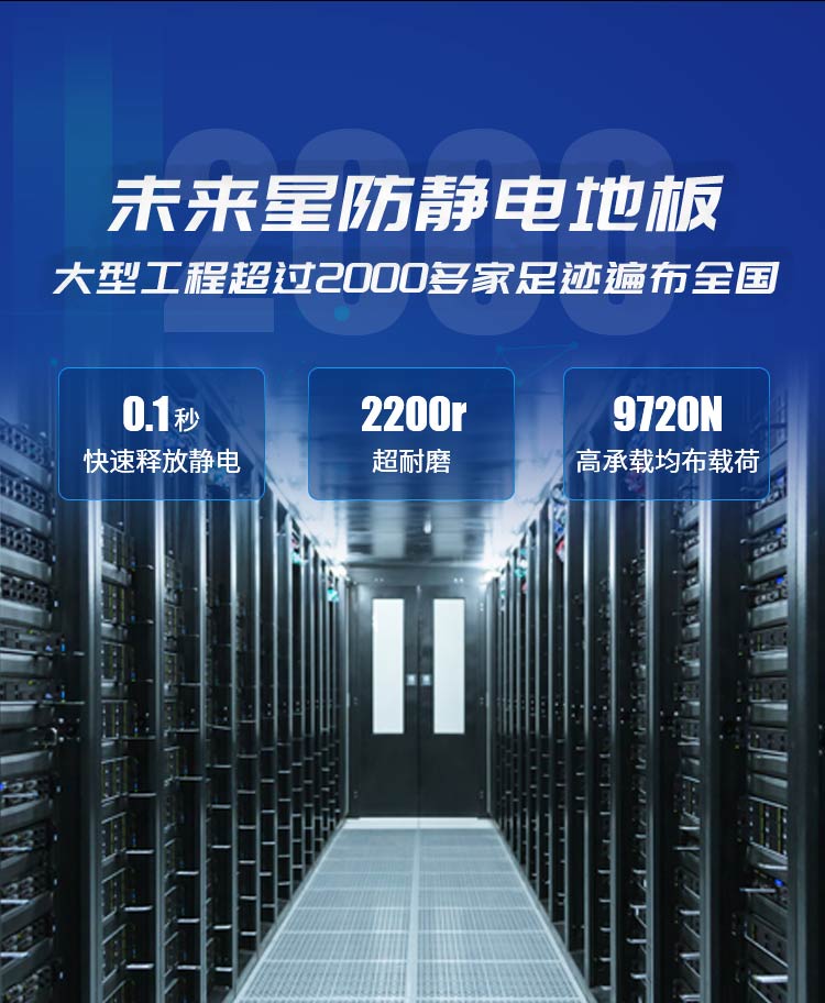 未來星防靜電地板深耕行業(yè)20多年,是大型建筑工程防靜電地板生產(chǎn)基地,公司已與航天航空、國家電網(wǎng)、高鐵站、地鐵站、衛(wèi)星基站等1000+大型工程達(dá)成合作。我們秉承高品質(zhì),重服務(wù)的精神,認(rèn)真對待每一位客戶”